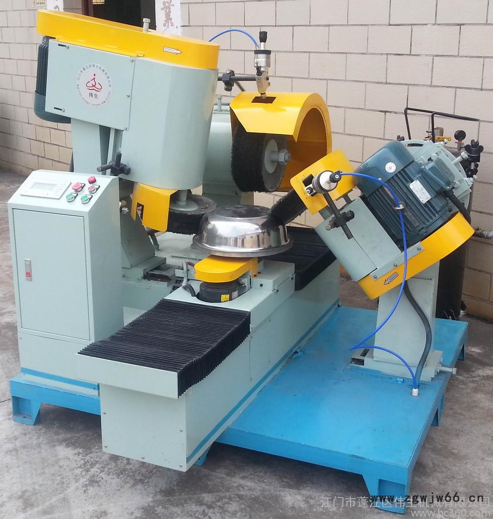 WH—PDW3-3P三头端面外圆抛光机(带喷枪),该机是中小批量的圆形、圆锥形产品的外表面抛光或砂光设备,如盘类、杯类、手轮等产品。具有性能可靠、安全性高、效率高等特点。