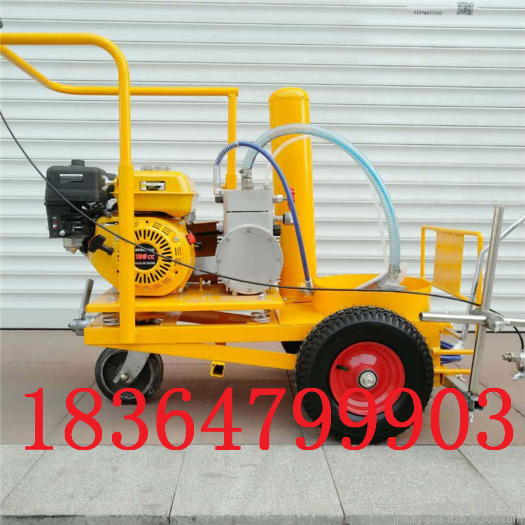 划线机一般要具有 发动机、(涂料桶)喷枪、导向杆、控制器等装置,并依据需要配置各种助力驱动载体。