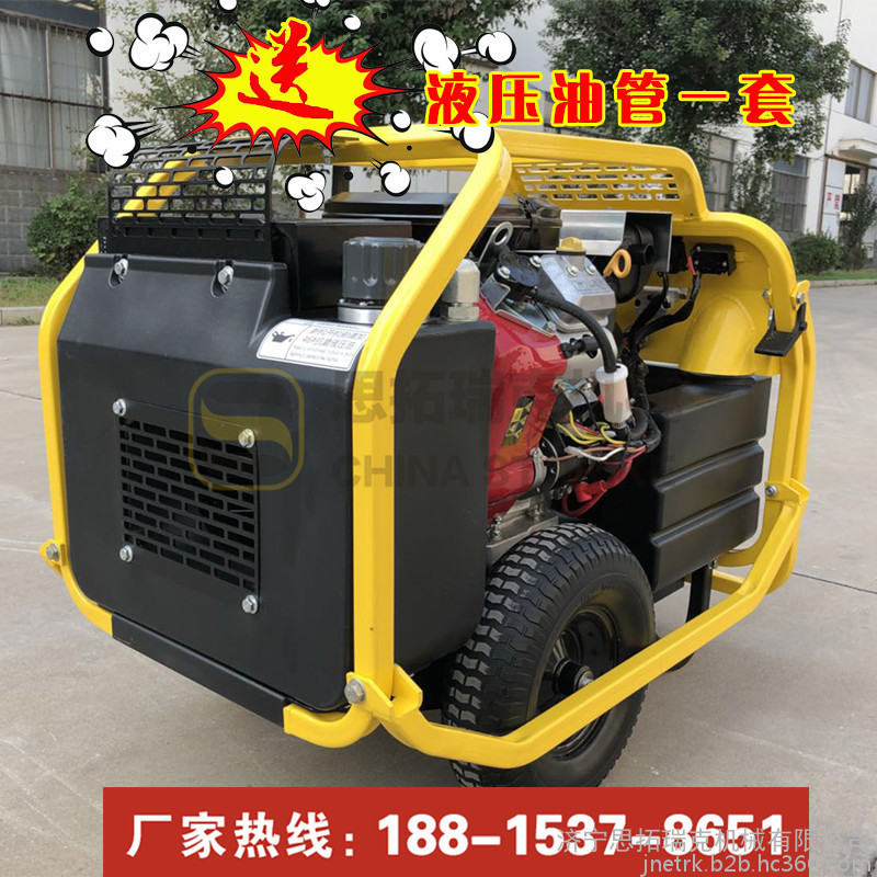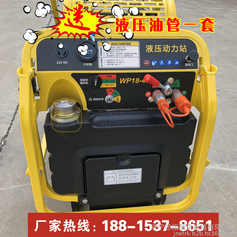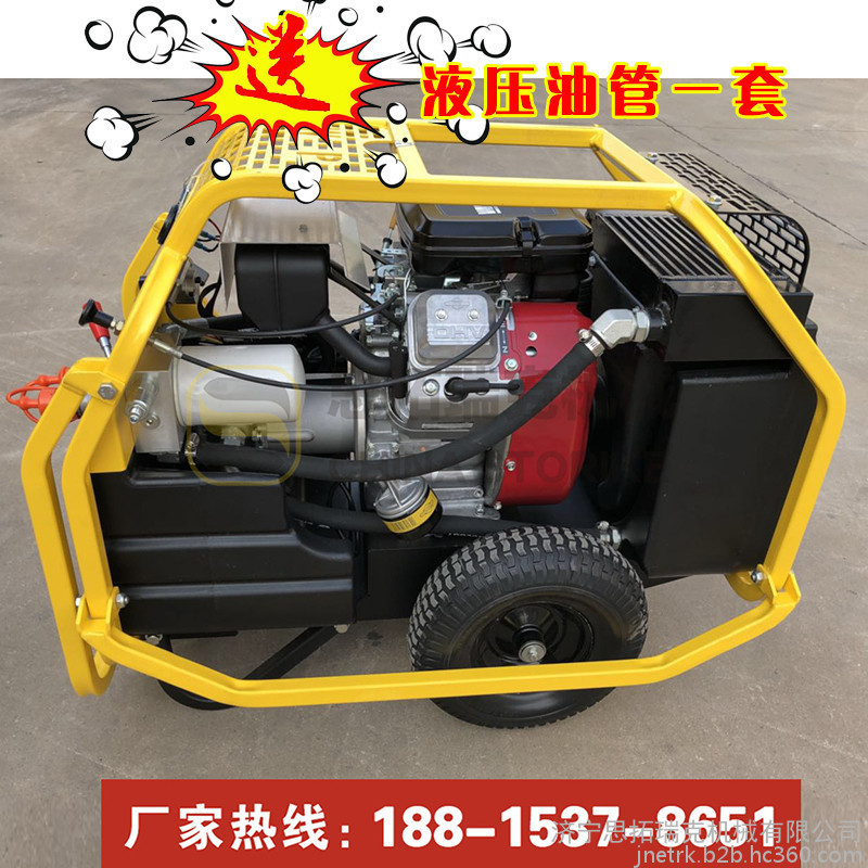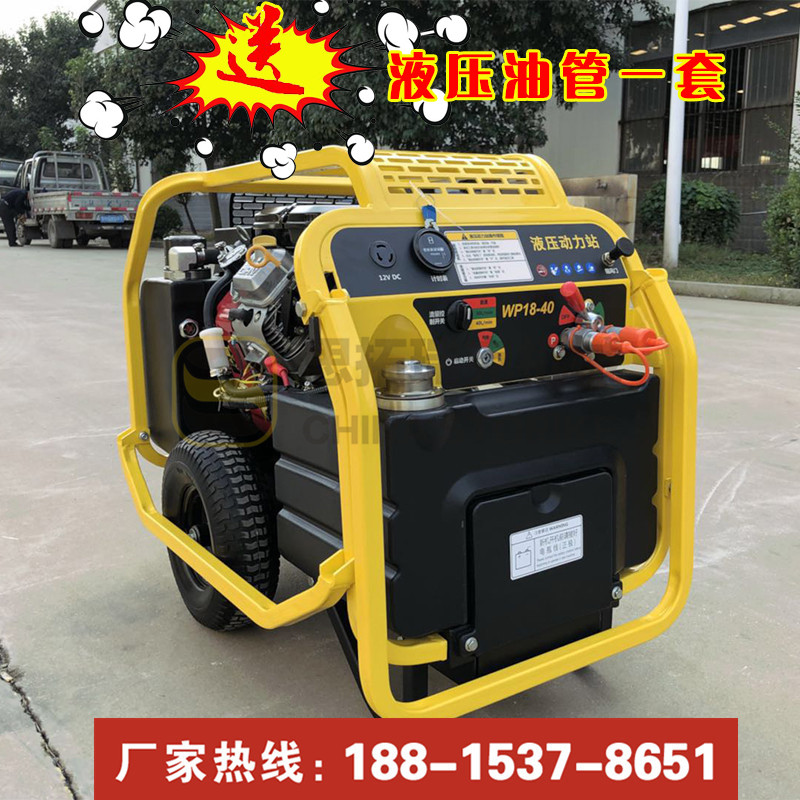 液压泵站又叫小型液压动力站,是一款小型的动力源,方便移动,适合快速和流动性强的工作,类似消防破拆等工作中;小型液压动力站采用G3/8的快速接头,液压油管一连接快速插拔,整体的操作都显示着快速便捷;液压动力有动力损耗低的优点,而且我们这款液压动站的设计适合绝大多数液压工具的施工技术参数,可谓一机在手,天下我有!这款小型液压动力站配备18马力百利通汽油发动机,有13英寸轮胎,移动方便,动力强劲,针对市政、消防及园林施工都是不可或缺的设备!