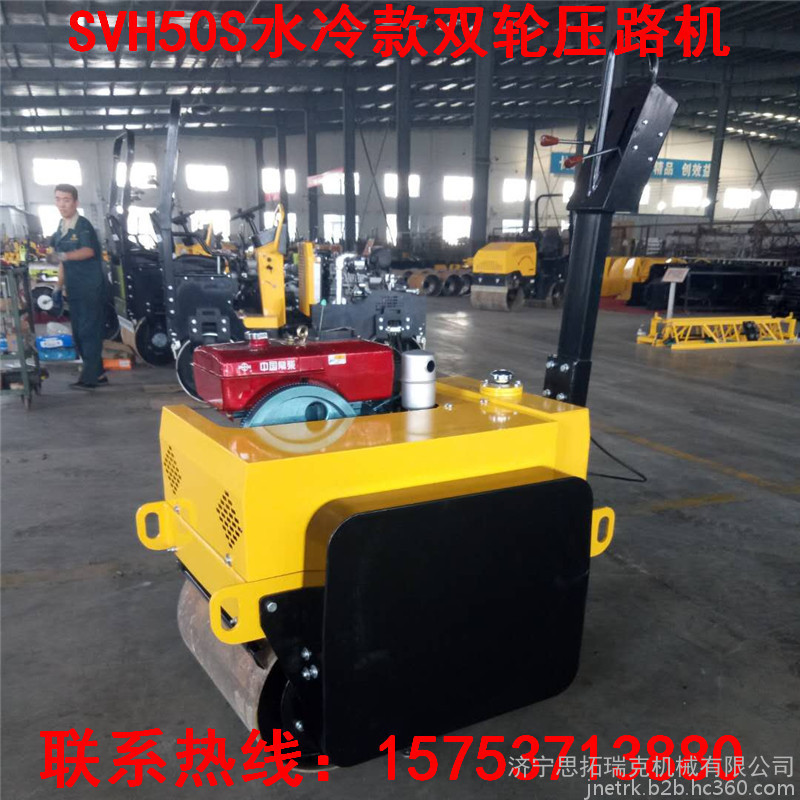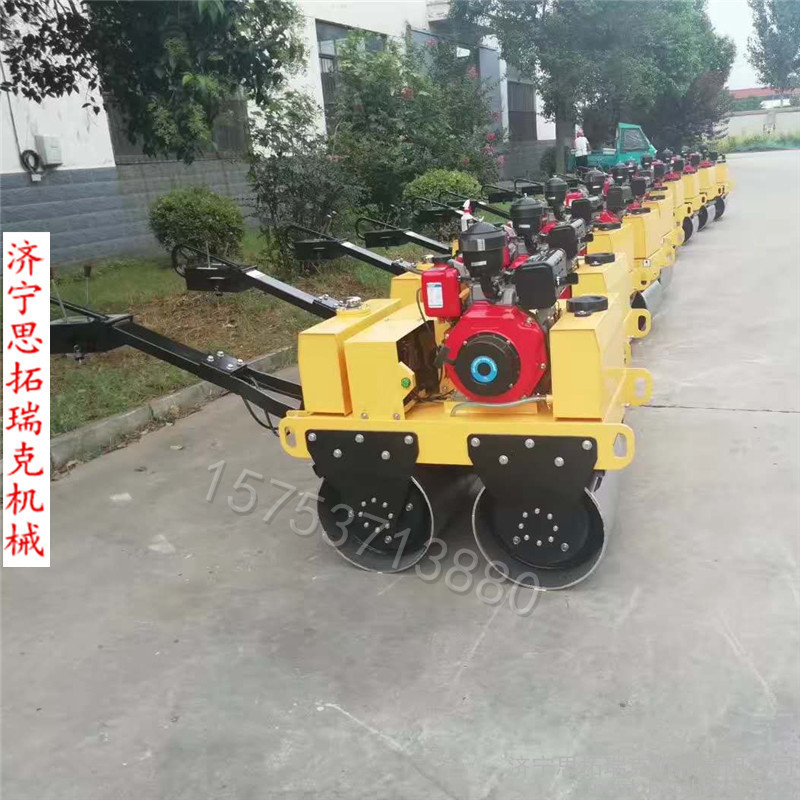 井盖周边沥青压实用手扶双轮压路机柴油0.5吨市政振动碾低价直销