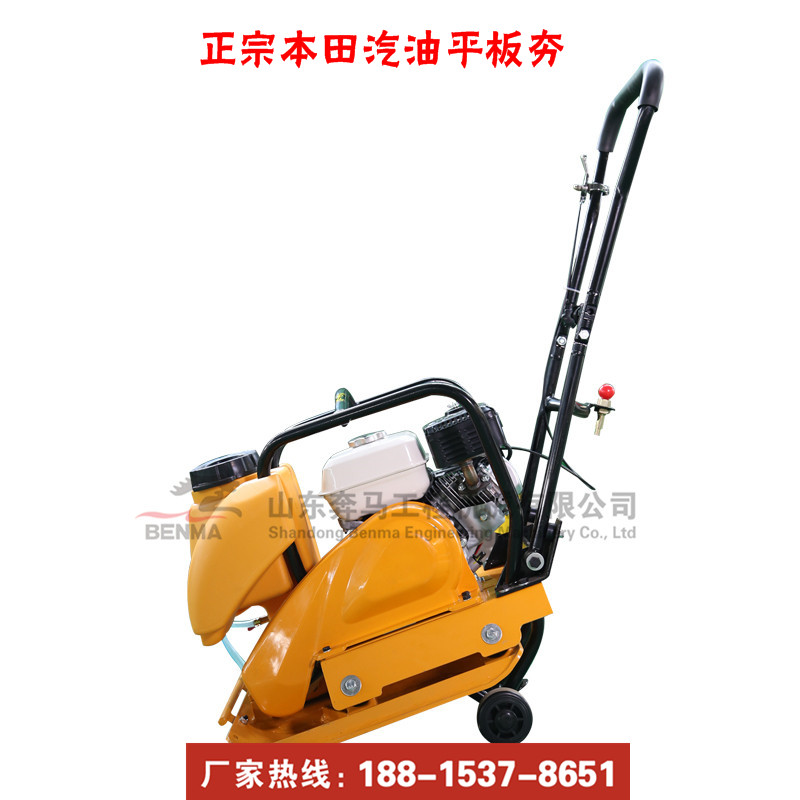单向汽油平板夯,带有水箱,可以洒水,夯实沥青、沟槽、回填土、大坝基础、民房地基等需要夯实的工作区域!激振力大,夯实效果好!