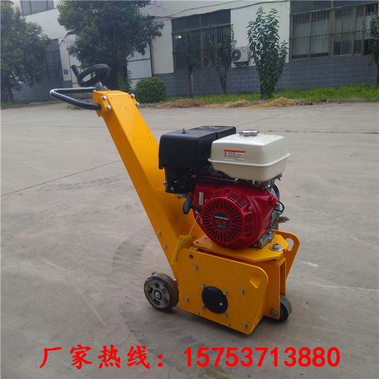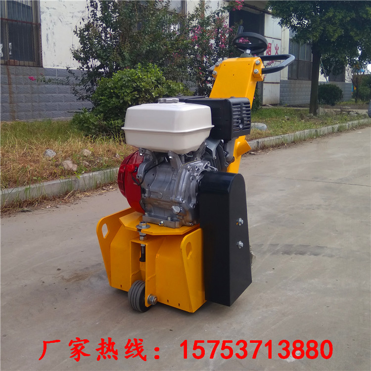 电动机或汽油机转动后,经皮带传动,带动刀鼓转动,对混凝土、沥青地面进行铣刨。铣刨深度由手轮调节