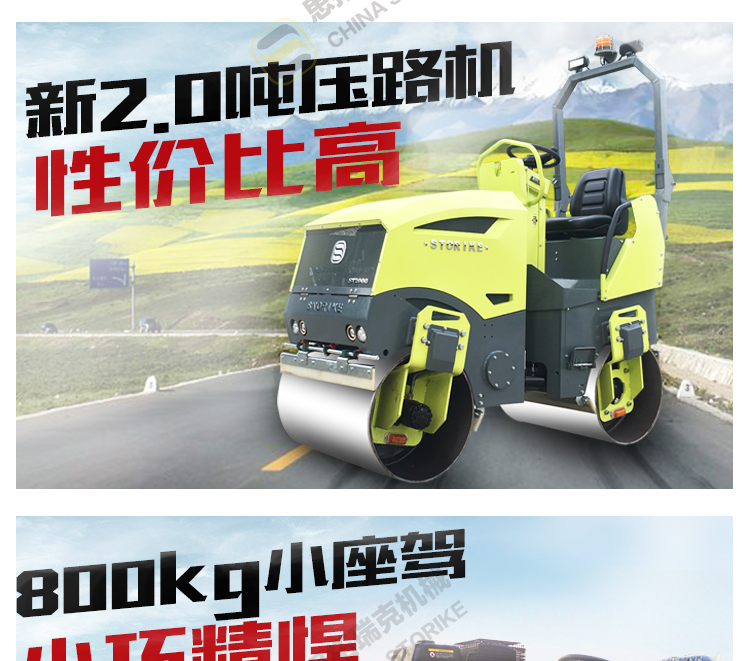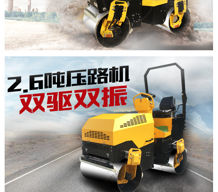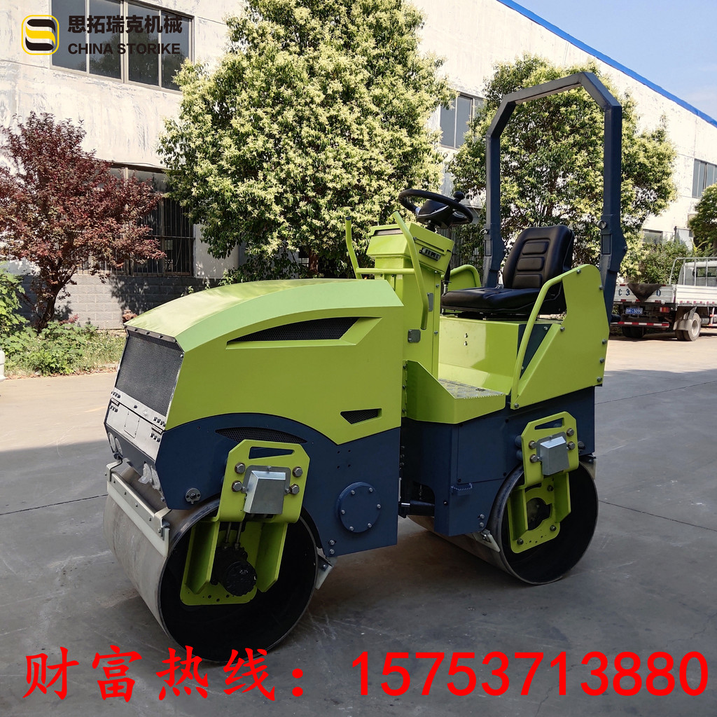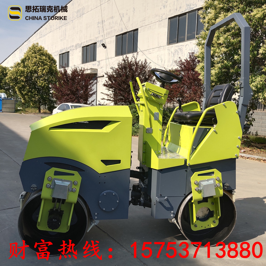 这款压路机是一款全液压小型压路机,液压双钢轮驱动,爬行压实有劲;液压单钢轮振动,振动稳定,压实力大;液压转向,方便灵活;一键电子间歇式洒水,高低速档位切换,设计贴心方便,操作面板一目了然,分分钟熟悉操作!柴油水冷发动机,机器性能好,压实厂区、马场、大面积草坪和高尔夫球场、沥青、回填土、混凝土水稳层等等,超级实用!