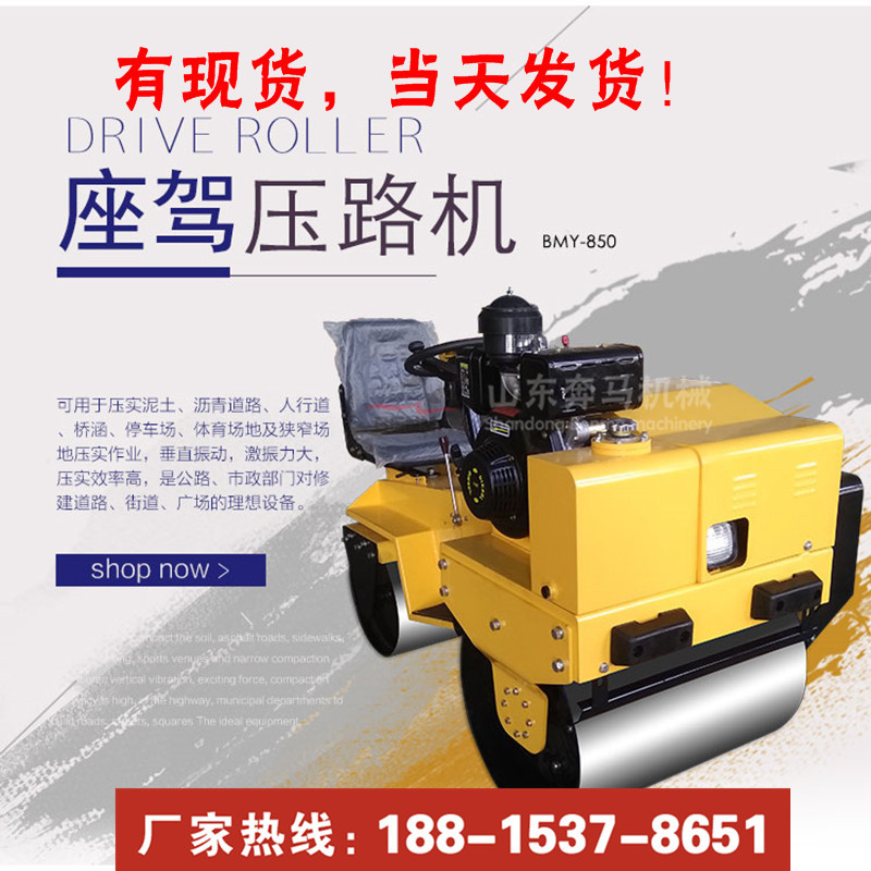 座驾压路机中的畅销款0.85吨小型压路机 双辊滚筒座驾压路机,支持球场地下车库建设工作