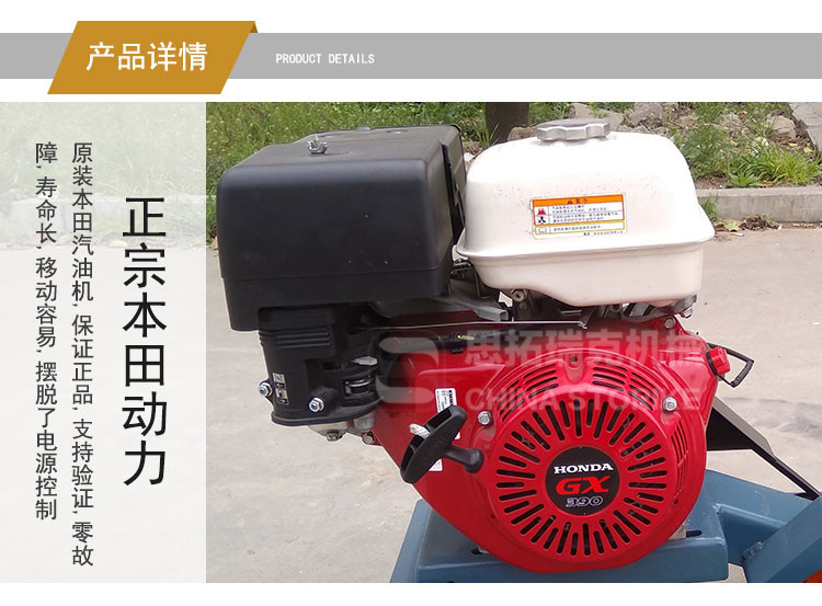 路面开槽机工作原理:是由动力强劲的名 汽油发动机作为动力源,通过三角带带动主轴高速旋转,手摇升降手轮使主轴下降,切割裂缝,前行走轮采用万向轮,使整机在工作中可以按照裂缝自然形成的曲线进行切槽。