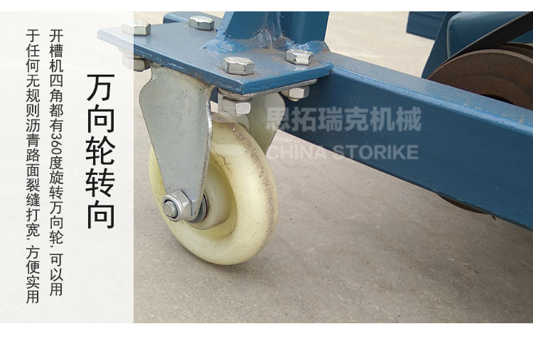路面开槽机 万向轮行走 水泥地面开缝机加厚型材 混凝土开槽机用途:用于对沥青路面裂缝进行开槽拓宽和清除杂物,为灌缝做前期准备。具有转向灵活、操作方便、工作效率高、跟踪效果好等特点。该机配备的硬质合金刀具,比普通的硬质合金锯片更耐用、耐磨,开槽效果好,使用寿命长。 完