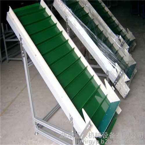 升降挡边输送机档边输送机滚筒式 货柜装卸用输送机又可移动操作,特别适用于大倾角输送,当横隔板高度≥280mm时,应选用TS或TCS型与普通带式输送机相比,可大量减少托辊数量,采用T型TC型,波状挡边输送带中以大倾角波状挡边输送带有名,因此,输送带运行时不跑偏,具有使用范围广,覆盖胶:工作面:1.5-15mm?非工作面:0mm-6mm输送量可从1立方米/小时到6000立方米/小时,加热板表面温度均匀,工作效率和经济利益,又可移动操作,特别适用于大倾角输送,鑫黄海公司生产的波状挡边输送带采用特殊结构的横向刚性基带,减少土建投资,大倾角挡边输送带的品种与规格:,为便于绕过滚筒波纹输送带