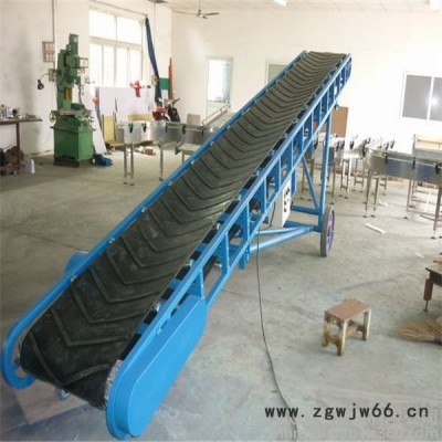 爬坡式皮带输送机说明:爬坡皮带输送机适用于楼层或高差间的货物的连续输送。倾斜角度小(≤30°)的爬坡皮带机,用于上下楼层、斜坡地形、天桥等具有高差的平面之间的物品输送。在某些情况下可以代替升降机使用。 在输送颗粒状物品时为防止物品因重力滚落,每隔一段距离可以加一块挡板。爬坡皮带输送机是在皮带上加装挡条、治具、裙边等方式从而使物体能在较大的角度上作提升输送。具有效率高、输送快、噪音低、不间断等特点。特别适合小物料的输送,如食品、注塑件、粉末以及各种零件行业,本公司产品运行平稳,无噪声,可靠性好,耐磨耐用,使用寿命长。