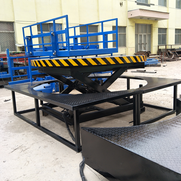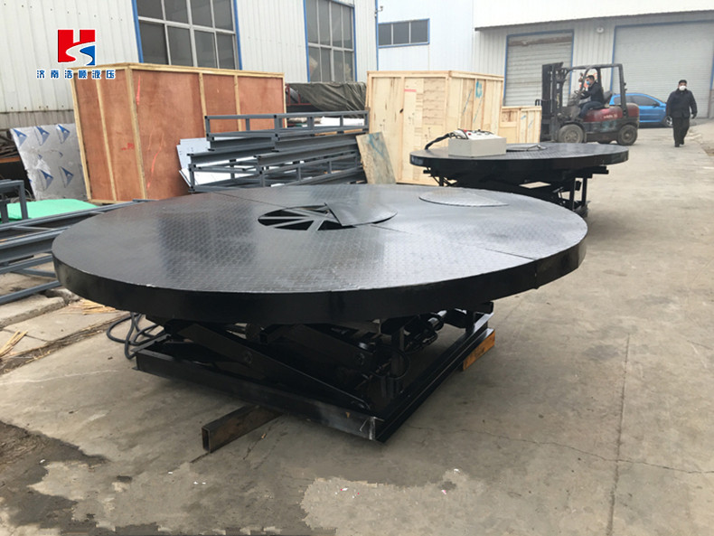 *旋转舞台升降机采用有效的导向系统,使伸缩台在平移过程中与固定台的间隙小,运行平稳、速度无级变化。同步装置采用低速大扭距驱动,使舞台在伸缩过程中平行、自如、伸缩到位, 可自动实现补平。