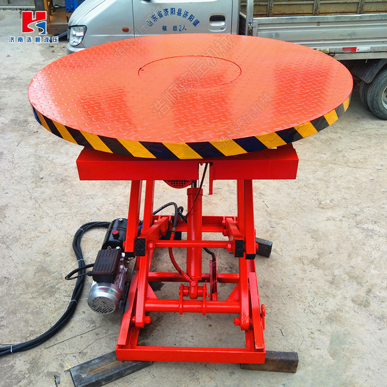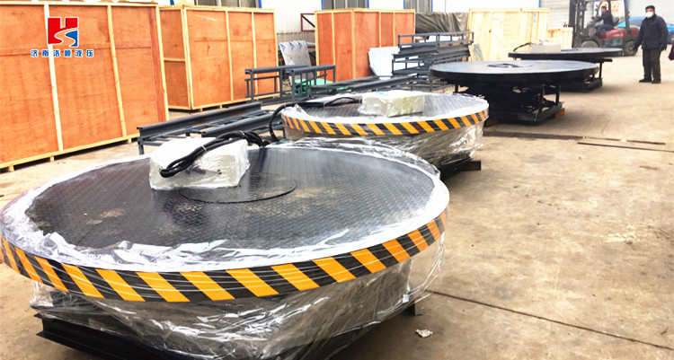 *旋转舞台升降机采用有效的导向系统,使伸缩台在平移过程中与固定台的间隙小,运行平稳、速度无级变化。同步装置采用低速大扭距驱动,使舞台在伸缩过程中平行、自如、伸缩到位, 可自动实现补平。