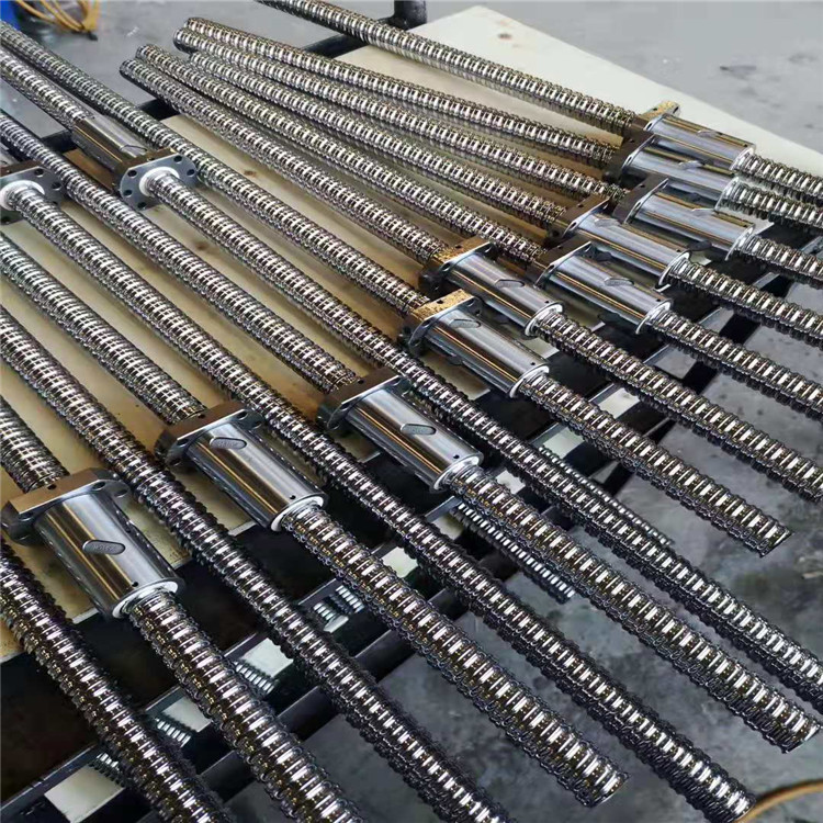 (6) 转方向间隙预压等级:P0、 P1、 P2、 P3 、P41.滚珠丝杠系列型号:SFISFI 和DFI型号的一致性很多。2.滚珠丝杠系列型号:DFI3.滚珠丝杠系列型号:SFU4.滚珠丝杠系列型号:DFU5.滚珠丝杠系列型号:SFT6.滚珠丝杠系列型号:DFT◎滚珠丝杠是将回转运动转化为直线运动,或将直线运动转化为回转运动的理想的产品。◎滚珠丝杠由螺杆、螺母和滚珠组成。它的功能是将旋转运动转化成直线运动,这是滚珠螺丝的进一步延伸和发展,这项发展的重要意义**是将轴承从滚动动作变成滑动动作。由于具有很小的摩擦阻力,滚珠丝杠被广泛应用于各种工业设备和精密仪器。◎滚珠丝杠是工具机和精密机械上**常使用的传动元件,其主要功能是将旋转运动转换成线性运动,或将扭矩转换成轴向反覆作用力,同时兼具高精度、可逆性和高效率的特点。特点(1)与滑动丝杠副相比驱动力矩为1/3 由于滚珠丝杠副的丝杠轴与丝杠螺母之间有很多滚珠在做滚动运动,所以能得到较高的运动效率。与过去的滑动丝杠副相比驱动力矩达到1/3以下,即达到同样运动结果所需的动力为使用滚动丝杠副的1/3。在省电方面很有帮助。(2)高精度的保证 滚珠丝杠副是用日本制造的世界水平的机械设备连贯生产出来的,特别是在研削、组装、检查各工序的工厂环境方面,对温度、湿度进行了严格的控制,由于完善的品质管理体制使精度得以充分保证。(3)微进给可能 滚珠丝杠副由于是利用滚珠运动,所以启动力矩极小,不会出现滑动运动那样的爬行现象,能保证实现的微进给。 (4)无侧隙、刚性高 滚珠丝杠副可以加予压,由于予压力可使轴向间隙达到负值,进而得到较高的刚性(滚珠丝杠内通过给滚珠加予压力,在实际用于机械装置等时,由于滚珠的斥力可使丝母部的刚性增强)。