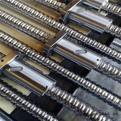 (6) 转方向间隙预压等级:P0、 P1、 P2、 P3 、P41.滚珠丝杠系列型号:SFISFI 和DFI型号的一致性很多。2.滚珠丝杠系列型号:DFI3.滚珠丝杠系列型号:SFU4.滚珠丝杠系列型号:DFU5.滚珠丝杠系列型号:SFT6.滚珠丝杠系列型号:DFT◎滚珠丝杠是将回转运动转化为直线运动,或将直线运动转化为回转运动的理想的产品。◎滚珠丝杠由螺杆、螺母和滚珠组成。它的功能是将旋转运动转化成直线运动,这是滚珠螺丝的进一步延伸和发展,这项发展的重要意义**是将轴承从滚动动作变成滑动动作。由于具有很小的摩擦阻力,滚珠丝杠被广泛应用于各种工业设备和精密仪器。◎滚珠丝杠是工具机和精密机械上**常使用的传动元件,其主要功能是将旋转运动转换成线性运动,或将扭矩转换成轴向反覆作用力,同时兼具高精度、可逆性和高效率的特点。特点(1)与滑动丝杠副相比驱动力矩为1/3 由于滚珠丝杠副的丝杠轴与丝杠螺母之间有很多滚珠在做滚动运动,所以能得到较高的运动效率。与过去的滑动丝杠副相比驱动力矩达到1/3以下,即达到同样运动结果所需的动力为使用滚动丝杠副的1/3。在省电方面很有帮助。(2)高精度的保证 滚珠丝杠副是用日本制造的世界水平的机械设备连贯生产出来的,特别是在研削、组装、检查各工序的工厂环境方面,对温度、湿度进行了严格的控制,由于完善的品质管理体制使精度得以充分保证。(3)微进给可能 滚珠丝杠副由于是利用滚珠运动,所以启动力矩极小,不会出现滑动运动那样的爬行现象,能保证实现的微进给。 (4)无侧隙、刚性高 滚珠丝杠副可以加予压,由于予压力可使轴向间隙达到负值,进而得到较高的刚性(滚珠丝杠内通过给滚珠加予压力,在实际用于机械装置等时,由于滚珠的斥力可使丝母部的刚性增强)。