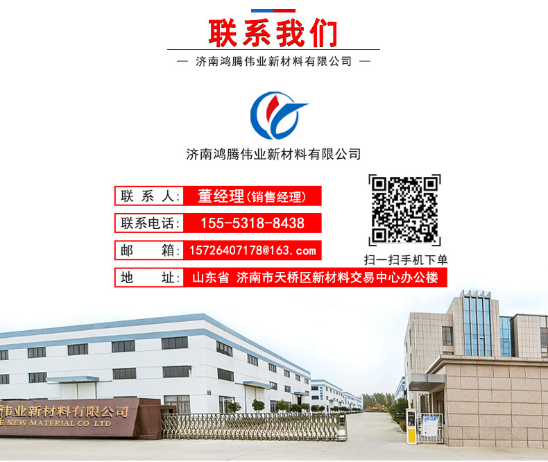 济南鸿腾伟业新材料有限公司注册地址位于山东省济南市天桥区济南新材料交易中心办公楼635室,注册机关为济南市天桥区市场监督管理局,法人代表为刘柱新,经营范围包括一般项目:新材料技术推广服务;化工产品销售(不含许可类化工产品);食品添加剂销售;石油制品销售(不含危险化学品);涂料销售(不含危险化学品);成品油批发(不含危险化学品)(除依法须经批准的项目外,凭营业执照依法自主开展经营活动)许可项目:危险化学品经营;货物进出口(依法须经批准的项目,经相关部门批准后方可开展经营活动,具体经营项目以审批结果为准)联系地址:济南桑梓店新材料交易中心。24小时销售热线:董经理15553188438