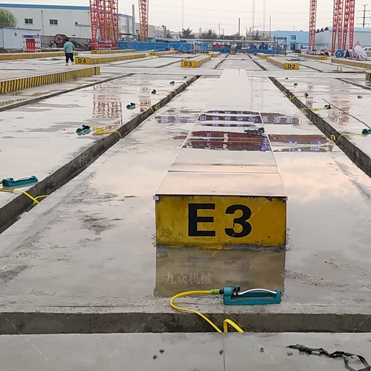 喷淋时间控制,若单个台座若喷淋时间太长,不仅浪费水,导致其他在喷淋循环等待中的梁板表面水早已蒸发影响了砼质量。因此必 须根据天气、温度情况和梁板养护阶段来调节喷淋时间继电器时间一般(20s~40s),如刚拆模的梁板表面温度ji高喷淋时间40s,养护周期快结束的设置20s,如养护周期有10片梁板需养护,那么设置总循环时间为300s,其中喷淋循环时间200s,平均喷淋20s,等待时间100s,即喷淋一循环后等待100s后再次喷淋循环,等待时间也需根据天气、温度情况来调节,甚至不设置等待时间一直循环喷淋。 经过喷淋后的施工用水进入排水沟,然后汇集到沉淀净化池内,经过沉淀后抽回储水池进行回收利用,起到既节约用水又保护环境的目的。