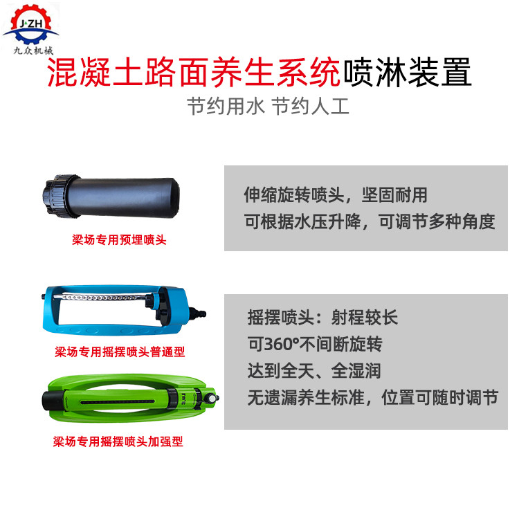 2.梁的两侧使用伸缩喷头暗藏地平面以下,上面使用盖子盖起,以免伤害到喷头,在使用过程中可任意调换角(0-360)度旋转,可根据现场情况任意调试伸缩摇摆,在不被使用的情况下伸缩喷头回自动缩回地平面以下,以保证不被损害。任丘 桥梁智能喷淋养护机 高压摇摆喷头
