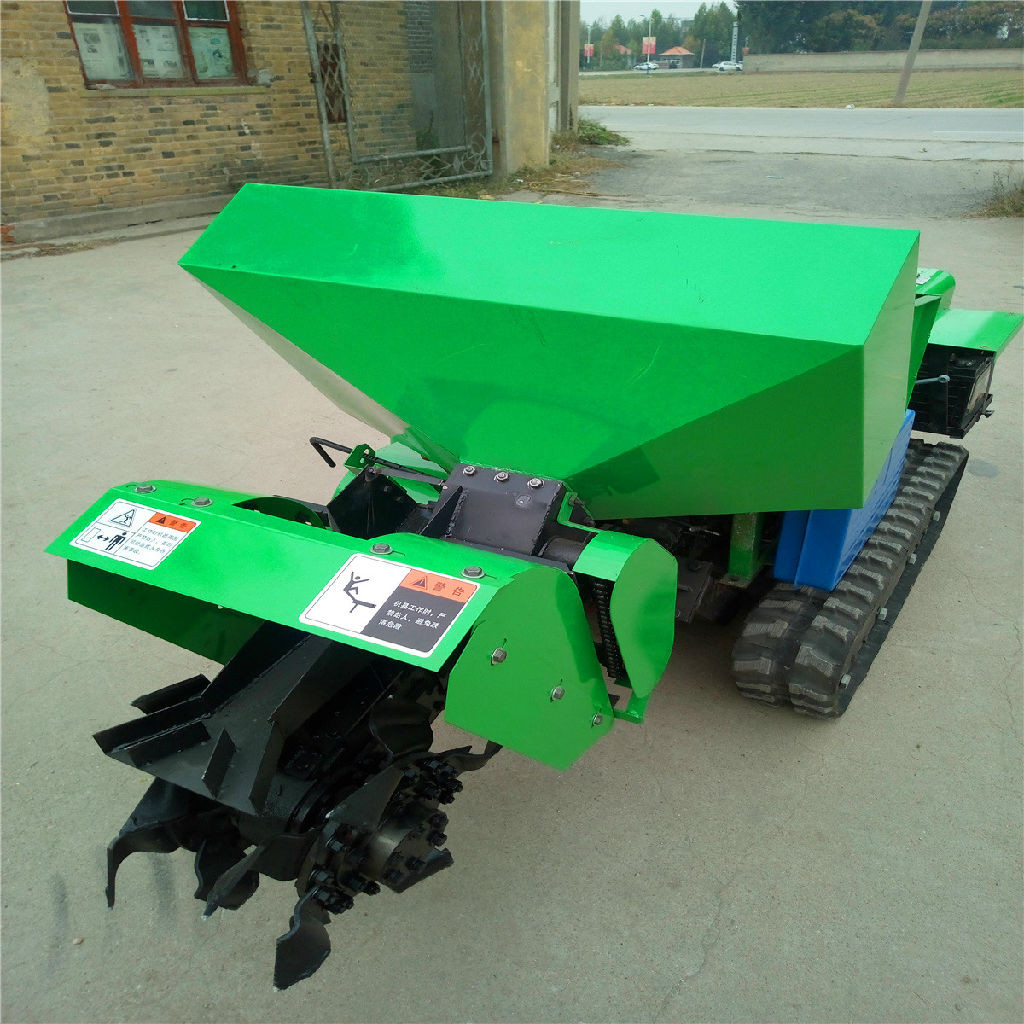 履带开沟施肥机是一款多功能田园果园管理机械;特点是开沟施肥/回填自动化一次性完成!固态化肥(颗粒/粉末);有机肥/厩肥都可以实现自动化完成。也可以单独开沟二次回填,还可以装配/旋耕犁/锄草机具!由于农家肥和化肥的肥料性质差别很大,这种开沟施肥机是您的选择!这种开沟施肥机的工作原理是由双叶片的螺旋式推进器横向将肥料排出下落到沟里;在整个机器开沟幅宽内均匀施肥。