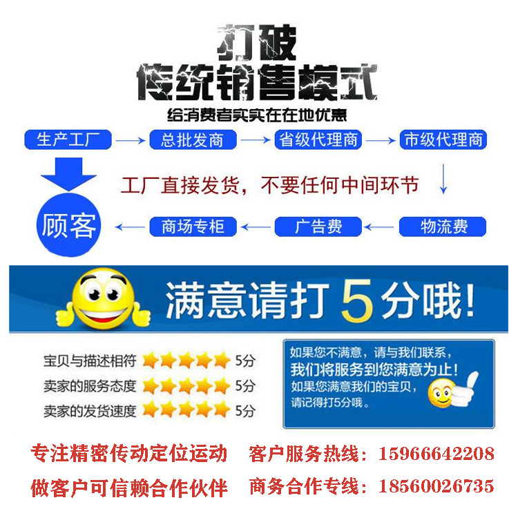 我公司产品专注于精密传动定位运动领域,研发生产近十年,积累的大量的经验,有能力解决各类精密传动定位的难题。我公司的产品大批量应用于机械、电子、医疗、交通等行业传动定位方面,产品以过硬的品质赢得客户的好评。公司一直以来倡导以“服务为本,用户至上”的市场意识,“诚实守信、一诺千金”的经营理念,坚持“团队协作,勤奋务实”的工作作风,努力在未来时间里有更出色的表现,更高效的服务来满足于行业需求!