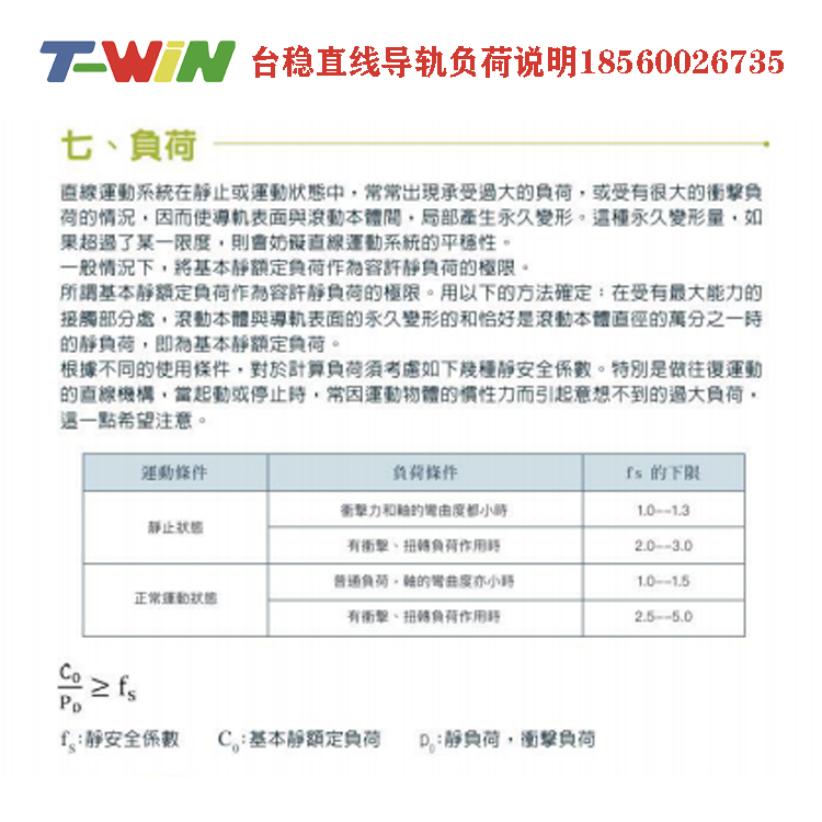 | 中负荷、重负荷、超重负荷 | 导轨负荷说明 |