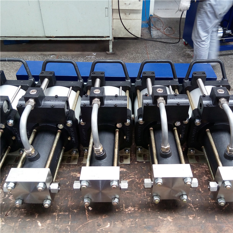 赛思特氮气增压系统引进国外气动增压装置原理,使用压缩空气为动力源,通过对驱动气源压力的调整,便能得到相应的输出压力。