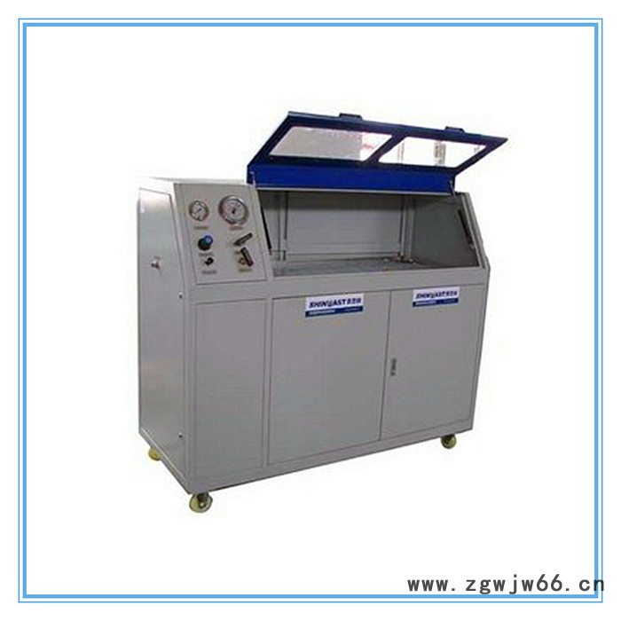 整个设备由两部分组成,计算机控制及动力源箱体部分和试验箱体及水箱部分。由计算机设定试验参数,压力传感器检测系统压力,经过数据采集卡进入计算机,计算机捕捉爆破峰值,计算机操作控制整个测试过程。