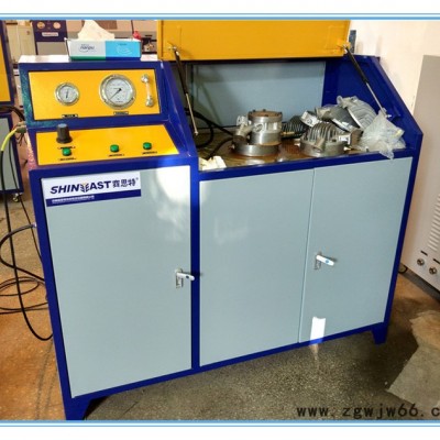 赛思特水压试验机具有达到增压比自动停止的功能,因此可以调节相应的气源压力来实现到压自动停止的效果例如100倍增压比的试验机,如需要60mpa水压,可以调节气源调压阀至0.6mpa气压,放大100倍即输出压力60mpa,设备增压至60mpa即可自动停止增压,压力控制调节方便快捷,)