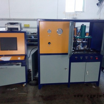 工作压力:0-320 压力:320MPA可选) 试验环境温度和介质温度:常温; 试验压力无级调节,靠计算机程序控制,试验参数设定后可以自动充水、升压、保压爆破)、泄压 试验程序有: ①、恒速升压-爆破 ②、恒速升压-保压-卸压 ③、恒速升压-保压-爆破-泄压 实现计算机控制功能,压力试验过程中可以任意设定单段或者多段保压测试,也可以保压或测泄漏后直接爆破,升压速度能保持恒定,可实现无级调节,升压速度可显示;被试件发生破裂、爆破设备自动停止加压,试验数据和曲线参数能实时显示、能自动保存存贮试验结果、并可任意查询打印试验报表;打印内容包括实验项目、升压速度,压力时间曲线,测试时间,生产厂家、型号、测试编号和检验员等内容。 该设备上装有显示爆破实时压力数值的高压压力表、压力传感器,便于设备爆破压力显示使用! 各压力表接口,高压管路连接口,低压进气口等高低压阀门管路连接处全部为快插直通、锁母接头或螺纹连接,保证设备性能下以便于安装及拆卸!五、技术参数