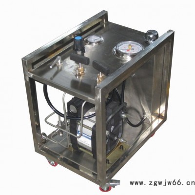 高压压力源采用气液增压泵GD400WL 增压比400:1;驱动压力:0.5-0.8MPa;输出压力0-320MPa.该增压泵驱动缸径为160mm,加压缸径为18mm,增压压力无级可调,输出压力稳定可靠!