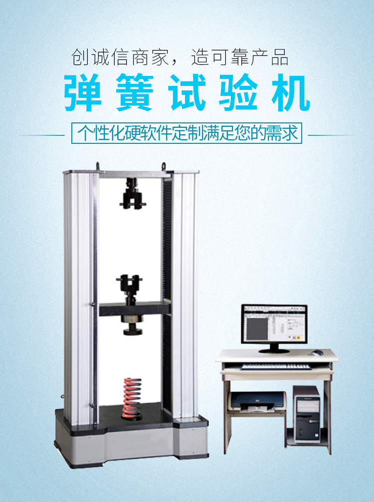 环形弹簧试验机用来检测环形弹簧及各种弹簧的拉伸、压缩、弯曲等力学试验,可测试弹簧的百分率变形比**大拉伸力、拉伸应变**大压缩力、压缩应力、延伸率等试验参数。本机满足JBT7796弹簧拉压试验机标准。可根据GB、ISO、DIN、ASTM、JIS等国际标准进行试验和提供数据,微机控制系统软件基于WINDOWS操作系统作为平台,可满足不同材料的试验测量需要,测控软件可按用户要求扩展功能