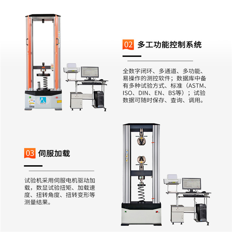 弹簧拉力试验机依据国内弹簧拉压试验机标准规定的技术要求制成,专业设计的自动控制和数据采集系统,实现了数据采集和控制过程的全数字化调整。能对拉簧、压簧、碟簧、塔簧、板簧、卡簧、片弹簧、复合弹簧、气弹簧、模具弹簧、异形弹簧等精密弹簧的拉力、压力、位移、刚度等强度试验和分析。