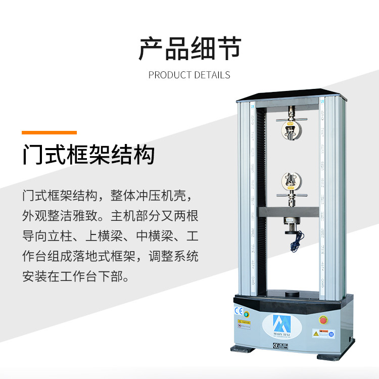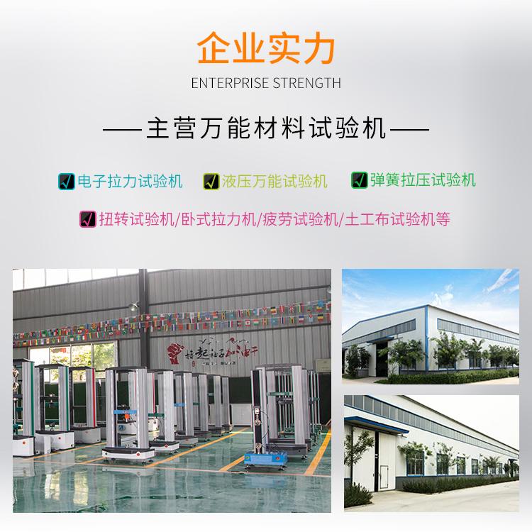 公司主要产品有:电子万能试验机、液压万能试验机、微机控制电液伺服万能材料试验机、卧式拉力试验机、拉力试验机、压力试验机、弯曲试验机、疲劳试验机、脚手架试验机、拉伸试验机、紧固件拉力机、汽车部件拉力机、薄膜拉力机、工程塑料拉压力试验机等力学检测的必备仪器。可按照用户的需要研发各类专门用途的试验机。