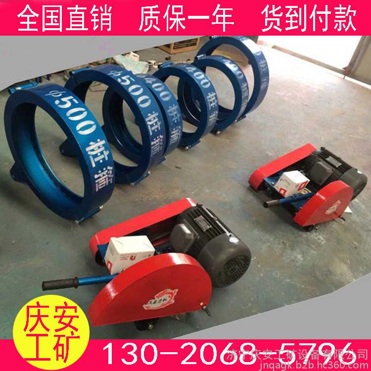 4.将桩头切割机上的挂钩直接套入桩箍外套挂孔上,沿着周围横向切割桩头,如切割不平衡可以通过挂钩螺丝进行调节。