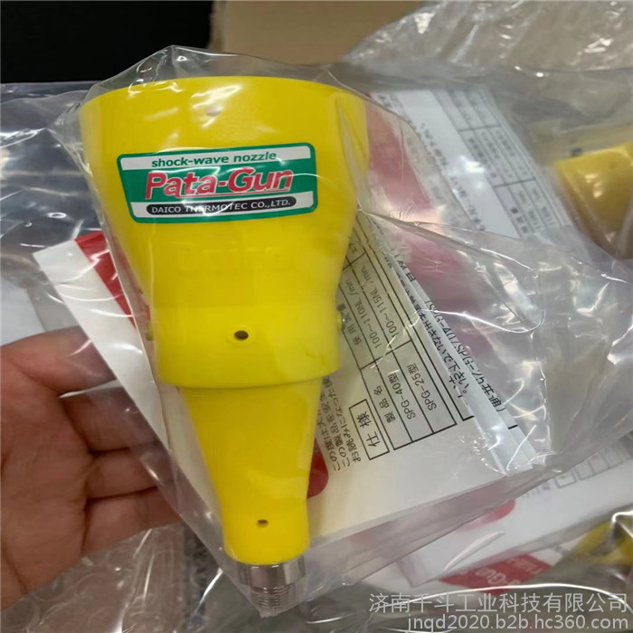 从盖的背面突出的柔软的聚氨酯液体注入出口高速旋转,在较大的范围内产生间歇性的冲击波。与传统的雾化喷嘴用空气推动的效果相比,对空气进行冲击的效果节省了空气消耗并缩短了处理时间。