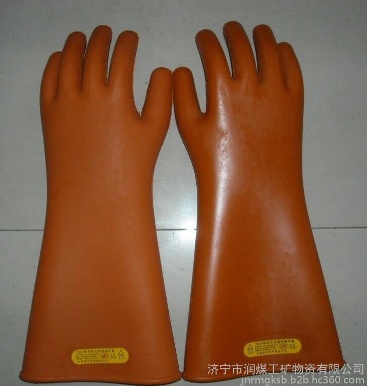 绝缘手套又叫高压绝缘手套,是用天然橡胶制成,用绝缘橡胶或乳胶经压片、模压、硫化或浸模成型的五指手套,主要用于电工作业。
