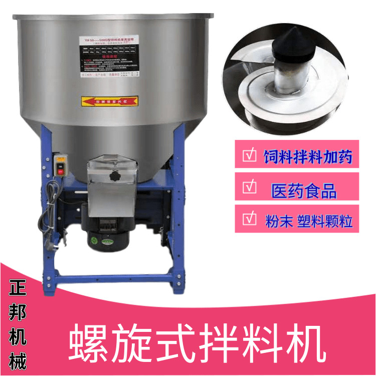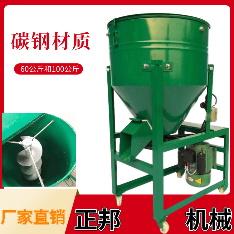 长期以来,中小养殖场饲料的搅拌是一个大的问题,大多数都是采用铲子进行简单的搅拌,这种简单的搅拌对使用量较少的饲料中需要添加的各种预混料、药物等很难均匀搅拌,经常造成药物不能全面发挥效果,甚至导致局部过多的药物或添加剂引起动物中毒;加上饲料搅拌非常辛苦,特别是需要发酵的饲料和饲喂湿料,由于重量过大,搅拌吃力,劳动强度大,虽然发酵饲料、农家饲料、自配饲料成本要低于购买的商品全价饲料,由于劳动强度过大的因素而放弃。