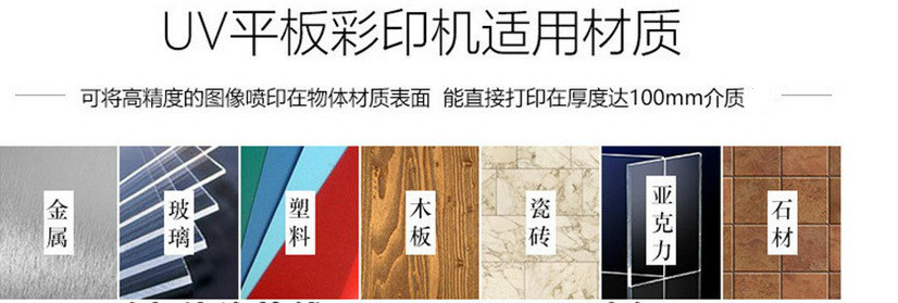 适用所有平面材料,玻璃、瓷砖、木板、密度板、石材、亚克力、KT板、丝绸、T恤都可以印上,做出的样式丰富,效果可达几十种;