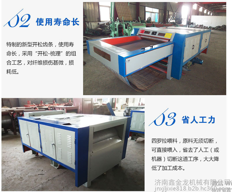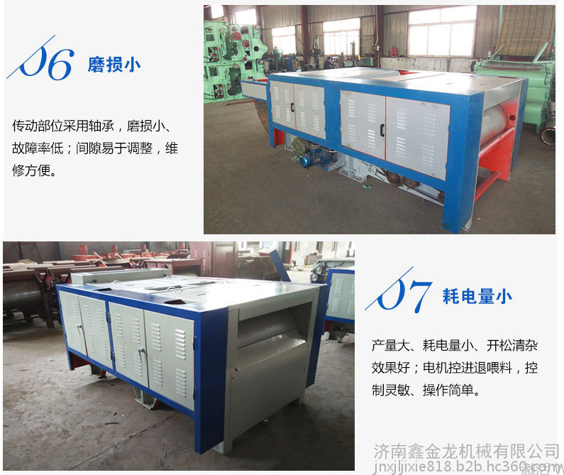 4、全新的齿条设计配置,集“打散~开松~双清理~双梳理”组合式工作机型, 对原料渐进