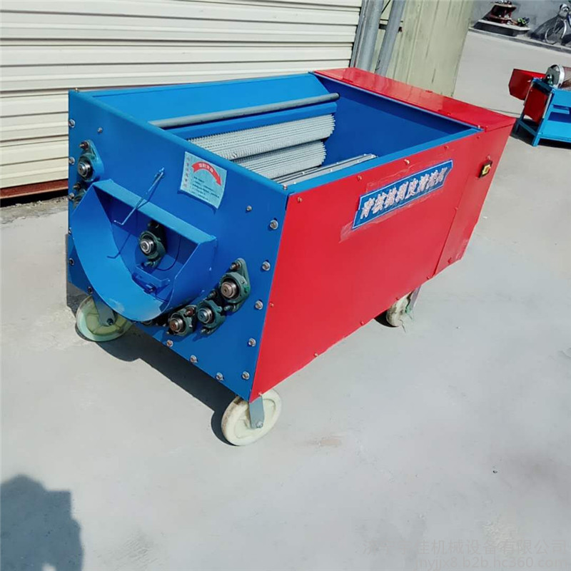 新型青核桃脱皮清洗机主要包括机架部分,喂给部分:上下防护罩板,传动罩安全机构;单相电动机、三角皮带传动、变速箱等动力、水泵部分;旋切滚筒、调节格栅、钢丝毛刷等脱皮部分。