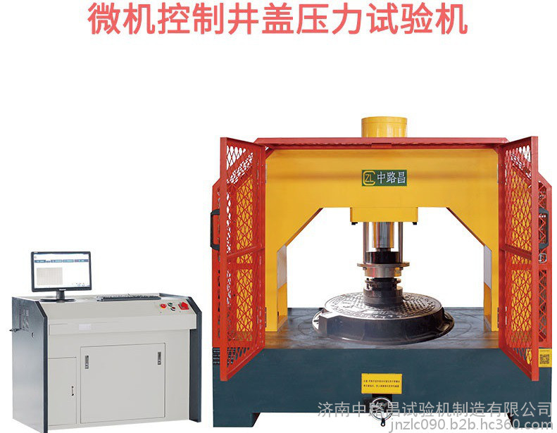试验机主机框架采用两立柱结构,油缸上置;大型工作台1200x1400mm;可以很方便的装卸井盖,稳定性好。