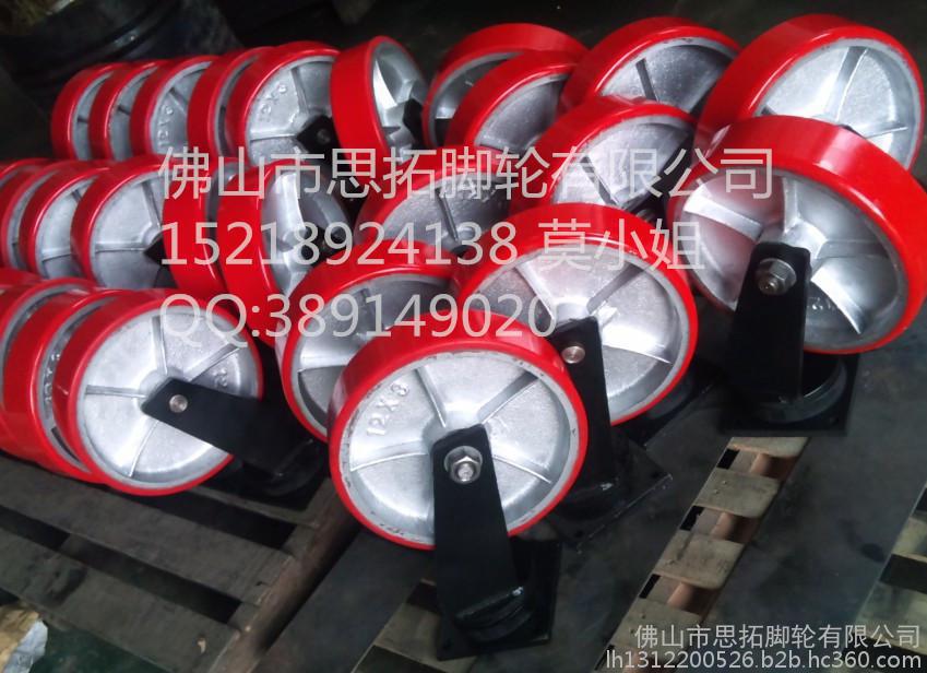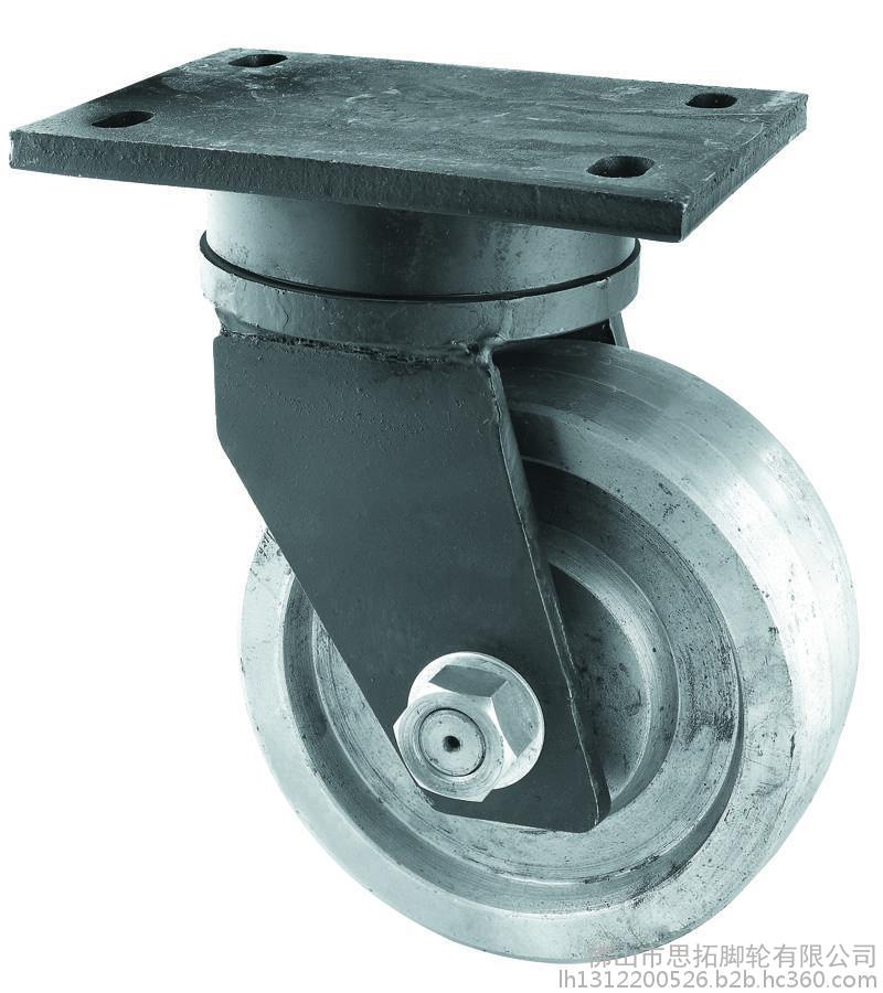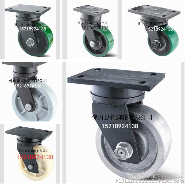 超重型脚轮,包括5、6、8、10、12寸,常规板厚14mm架厚10mm,架身重,非市面偷工减料设计出来的重型脚轮可比,可搭配玻纤尼龙轮,锻钢轮等,满足各种客户的需求。铁心聚氨酯材质具有耐磨,耐冲击,低噪音和转动顺畅的优点