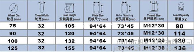 承载能力 | 80-100KG/个 | 尺寸 | 4寸 |