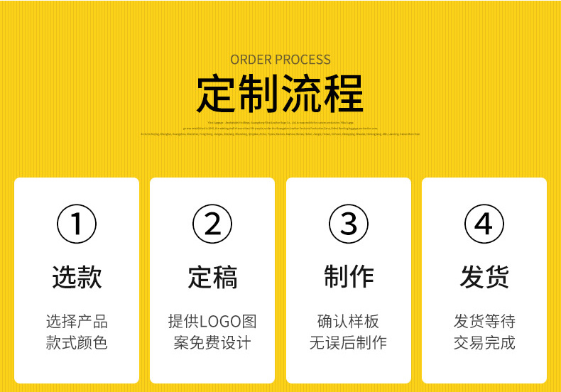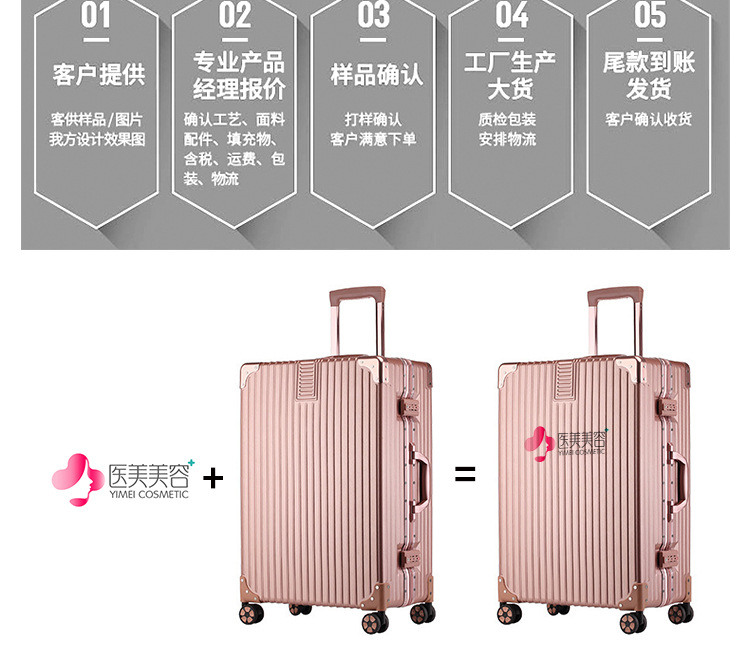 易贝箱包以定制拉杆箱、定制设备箱、定制主题箱为主营产业,其中包括拉杆箱ABS/PC/PP材质拉杆箱,牛津尼龙拉杆箱定制,镁铝/合金拉杆箱,真皮/皮革拉杆箱定制等,一切定制需求都遵从客户,以**先。易贝箱包拥有一套完善的产品质量保证体系和质量管理制度。