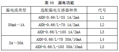 11、选配漏电功能时,要标注好漏电类型及对应的互感器类型,L35、L70、L105 是指互感器穿孔分别为 35mm、70mm、105mm。