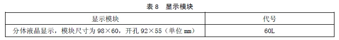 显示模块见表 8: