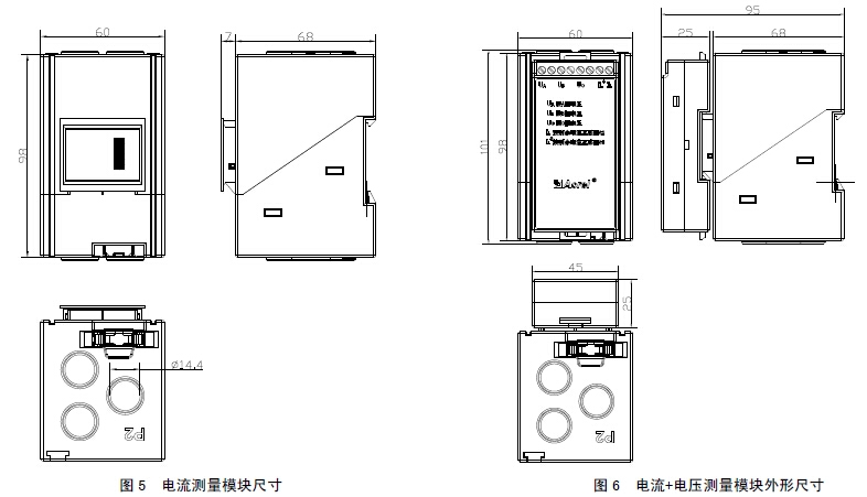 电流测量模块尺寸如图 5 所示,电流+电压测量模块尺寸如图 6 所示。