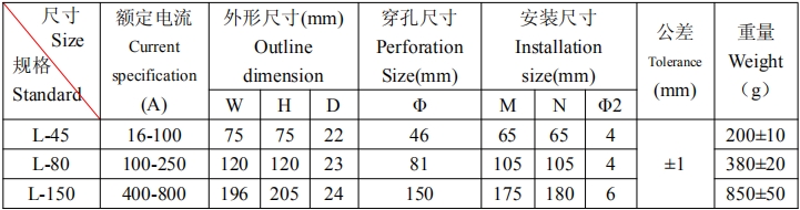 互感器部分(保护器电流规格为1、5、1.6、6.3、25、100时所配电流互感器)