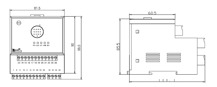 4.1主体控制模块采用标准 DIN35 导轨安装