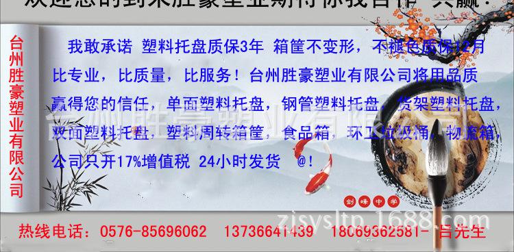 批发:单面塑料托盘,轻型塑料托盘,货架塑料托盘,钢管塑料托盘,焊接塑料托盘,双面重型塑料托盘,塑料周转箱,折叠箱,卡板箱,防静电物流箱,小吕帮你采购!**台州胜豪塑业有限公司期待合作!