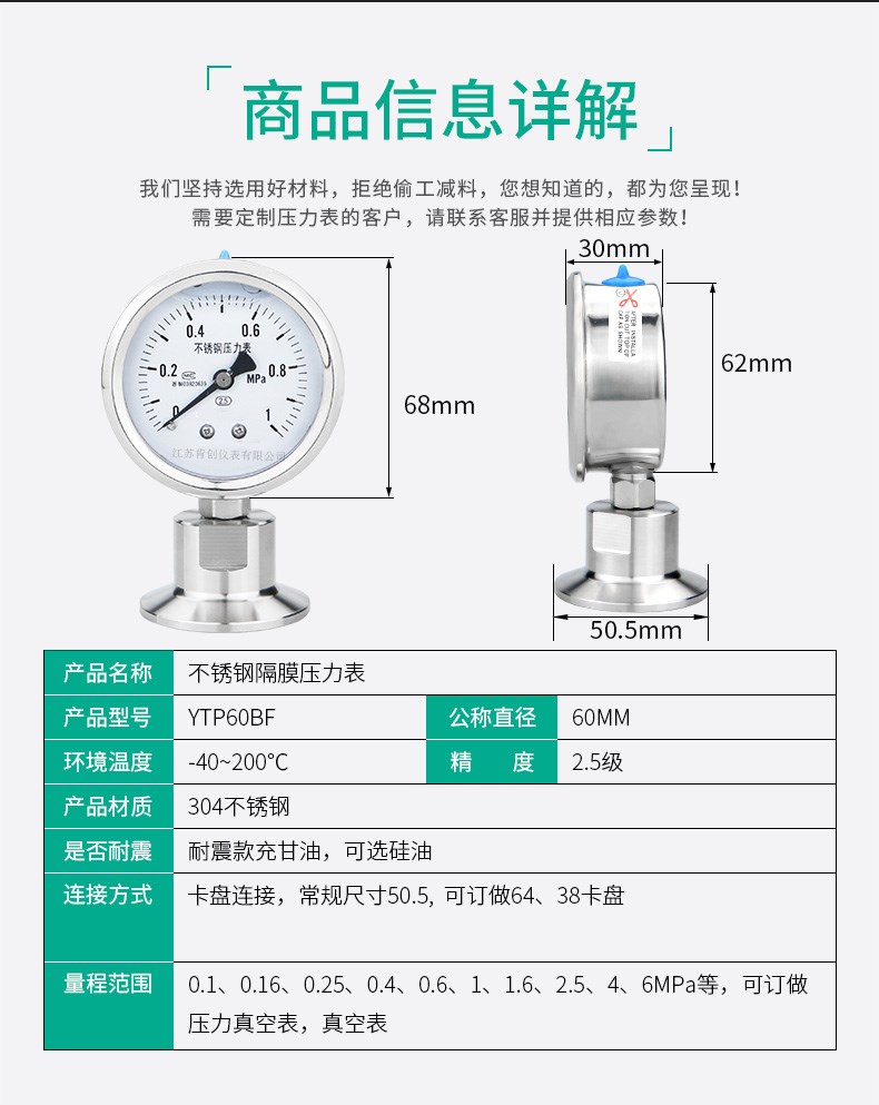 | 类型 | 隔膜压力表 |