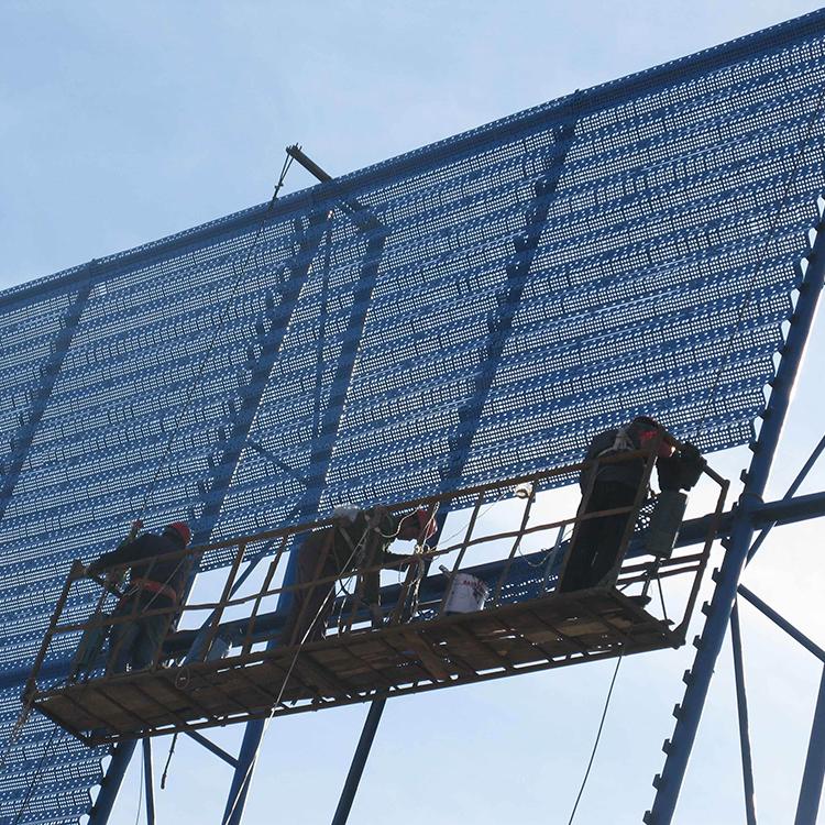 ?? 经过我公司近两年对10000吨以上储煤场的现场 应用,其综合挡风抑尘效果非常显著,单层挡风抑尘墙的综合抑尘效果可达85%以上,双层挡风抑尘墙的综合抑尘效果可达95%左右。挡风抑尘墙设置后不仅使污染严重的地区环境得到有效的改良,而且实施挡风抑尘墙的煤场每年还节省煤数千吨,在取得良好社会效益的同时又获得了**大的经济效益,美观整齐的挡风抑尘墙也成为这些地区一道怡人的风景线......
