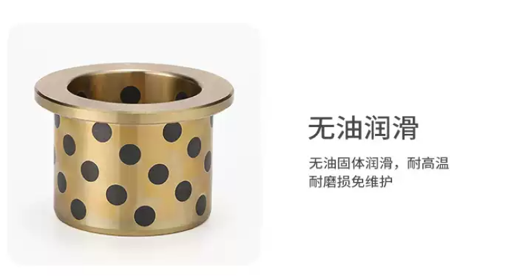 JFB自润滑翻边轴套,结合了铜合金(ZCuZn24Al6)的耐磨性及固体润滑剂的自润滑性能,使其在使用过程中无需加油维护。产品被广泛用于高载、间歇性或摇摆运动,如汽机车生产流水线、水轮机、水库工作/事故门、塑胶机械等。根据使用的工况,可以提供各种类型的铜合金。
